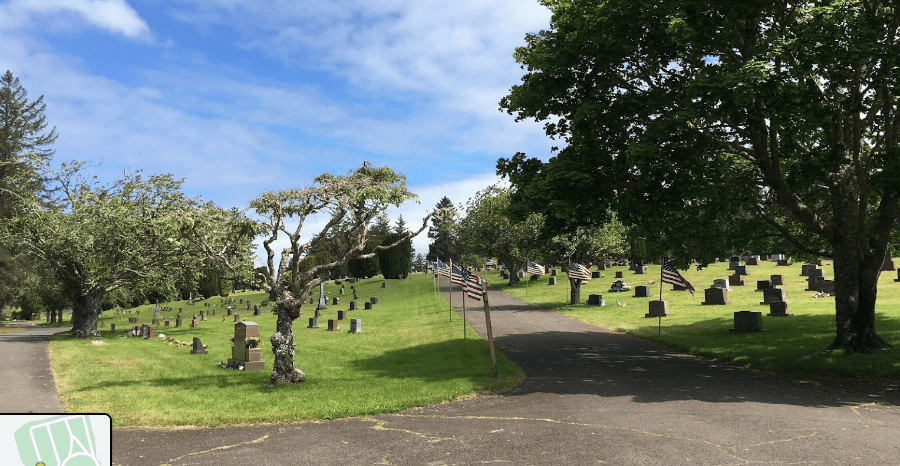 About a year and a half ago I visited the Ocean View Cemetery in Warrenton, Oregon. As I turned into the main driveway and looked up the slope, I felt a distinctly uneasy feeling and unhappy vibe from the grounds. In that area, almost all the stones looked identical, a similar reddish-brown stone with the same mid-century shape. (You can’t really tell from the only photo I can find, which I had to copy from my Google Maps contribution.)