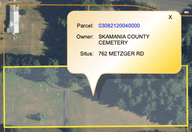 County GIS web sites (such as the Skamania County WA one) are great for locating the precise location of a cemetery lot. (If someone’s paying taxes on it they’re gonna be damn sure that map is accurate.) It’s good for determining whether a cemetery is located on private property.