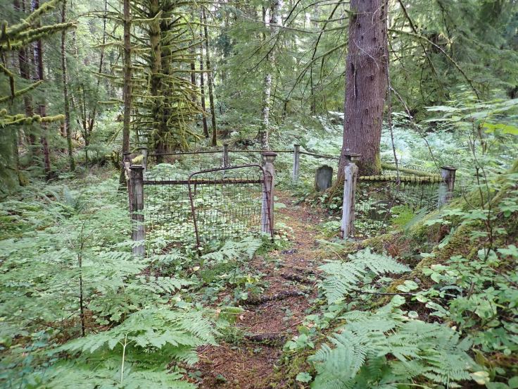 Most of the cemetery has been overgrown by underbrush, blackberries and ferns. Enough paths have been tramped down between the plots to indicate regular visitors. While a few attempts have clearly been made to maintain the plot fences, it’s obvious that in a few generations everything will have disappeared.