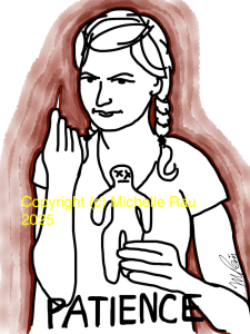 Ironically, something that helps me be more patient is other people’s impatience. If someone is being a jerk waiting for my parking spot, or trying to get information out of me, or doing things the hard way when I’ve already shown them the easy way…I will wait, because when I wait, I win. The jerk drives off with an angry honk, the nosy person gives up, or the stubborn person heaves the sigh that says “you were right.”